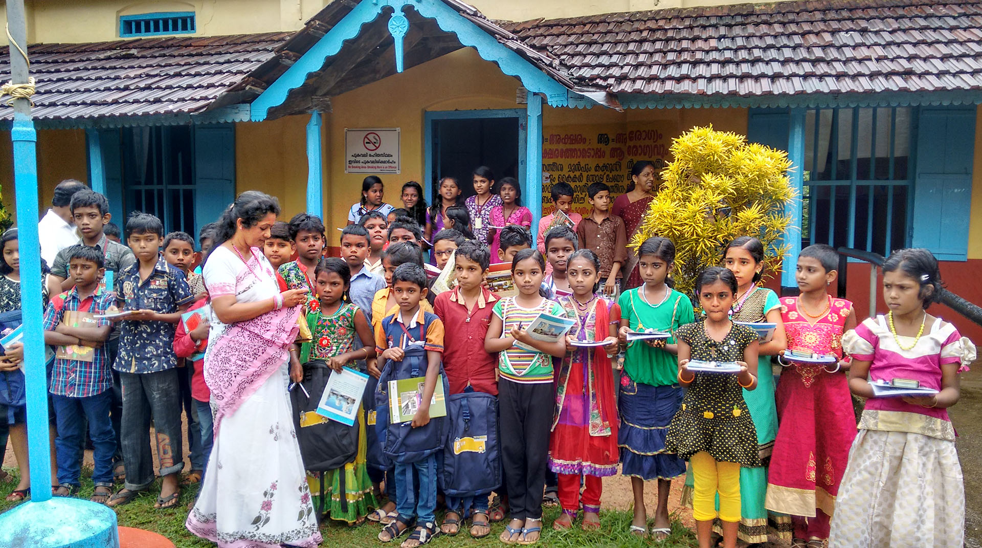 Every year Dr. M.S. Sunil distributed notebooks, uniform, bags, pencils, pens, instrument boxes, calculators umbrellas and tiffin boxes to school children studying in Govt. schools at Kokkathodu tribal area, and other areas in Pathanamthitta and Kollam districts are included in the “Home for Homeless” Project.