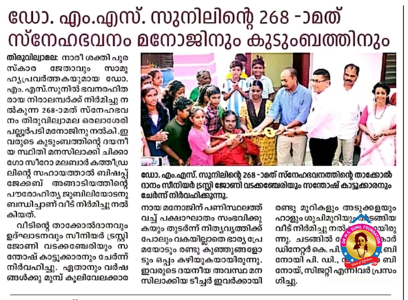 268-മത് സ്നേഹഭവനം കൈമാറി