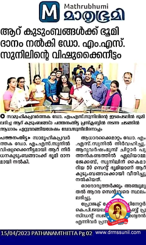6 കുടുംബങ്ങൾക്ക് ഭൂമി നൽകി ഡോ.എം.എസ്.സുനിലിൻ്റെ വിഷുകൈനീട്ടം