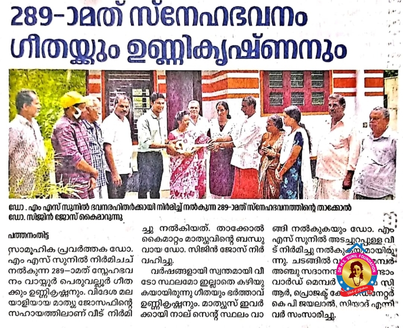 289 -മത് സ്നേഹഭവനം സമ്മാനിച്ച് ഡോ.എം.എസ്.സുനിൽ