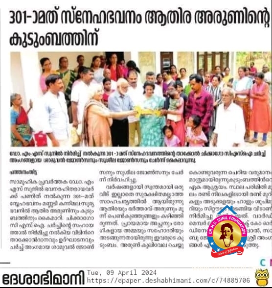 301- മത് സ്നേഹഭവനം ആതിരക്കും കുടുംബത്തിനും