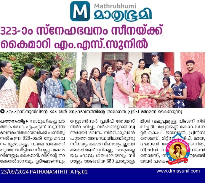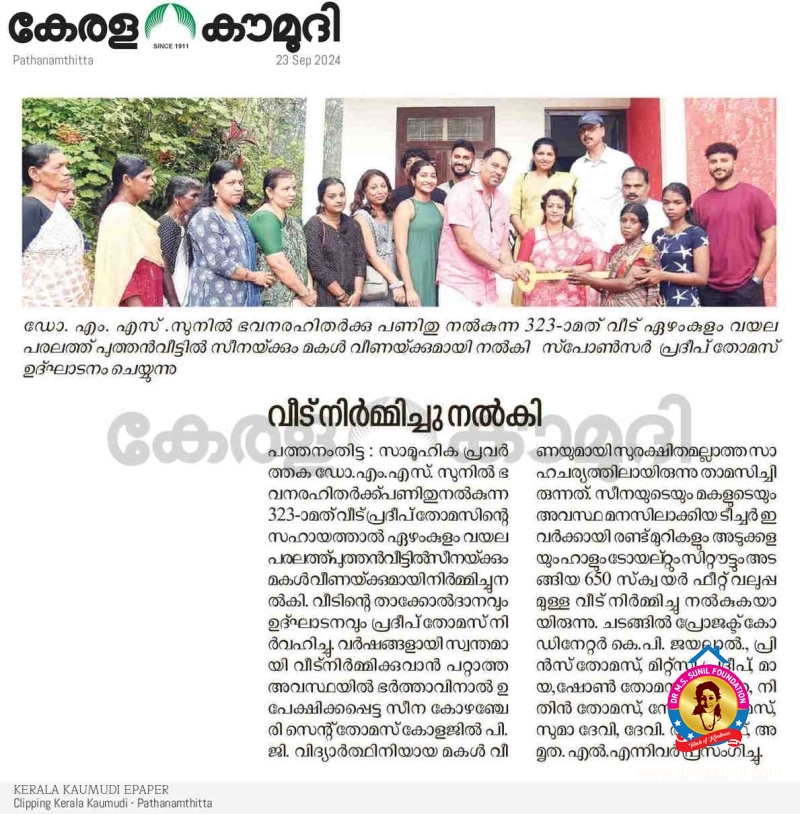 323 -മത് സ്നേഹഭവനം സമർപ്പിച്ചു