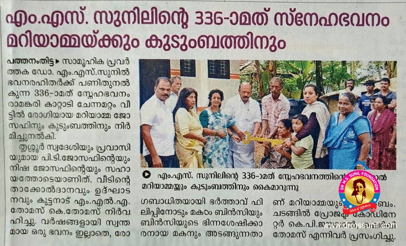 336-മത് സ്നേഹഭവനം മറിയാമ്മ കൈമാറി