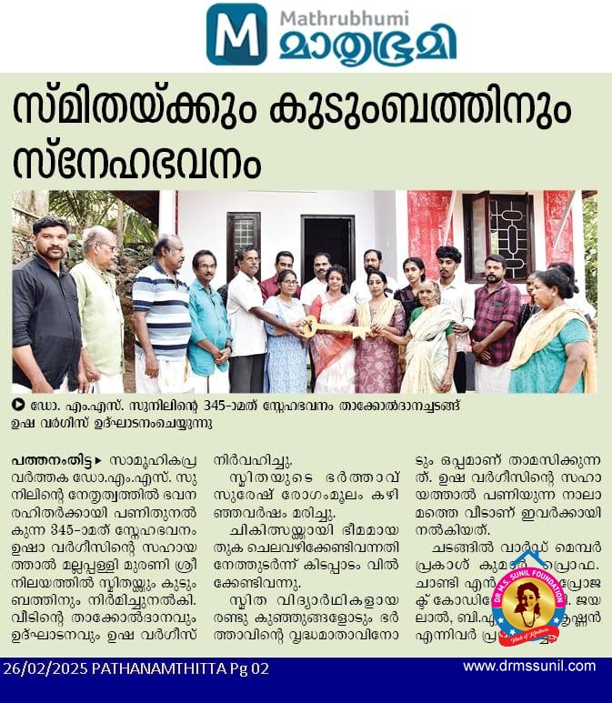 345 - മത് സ്നേഹഭവനം സ്മിതയ്ക്കും കുടുംബത്തിനും