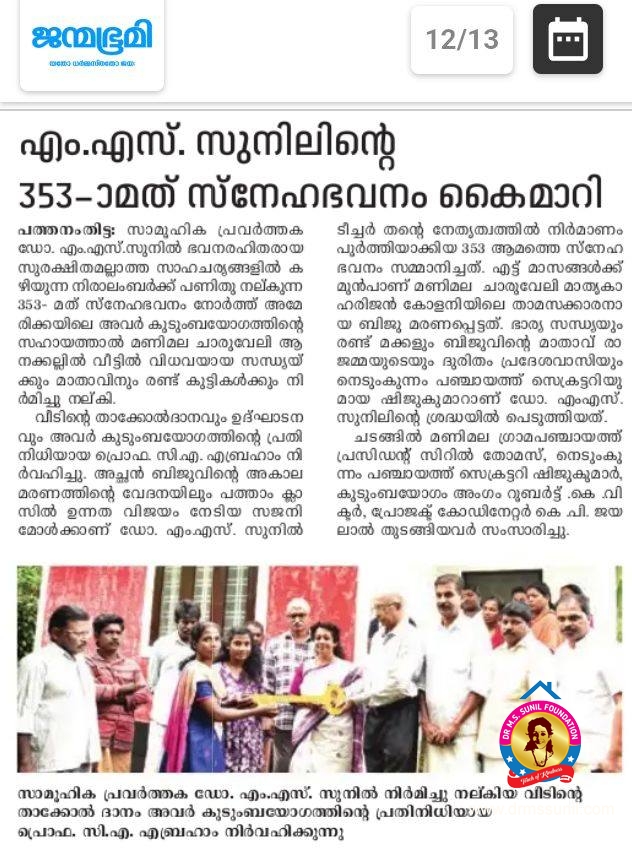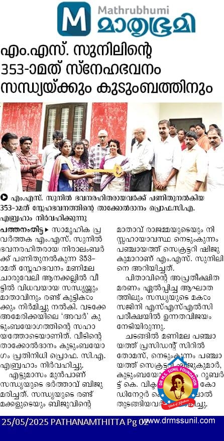 353-മത് സ്നേഹഭവനം സന്ധ്യക്കും കുടുംബത്തിനും