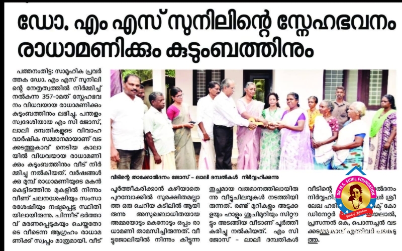 വിവാഹവാർഷിക സമ്മാനമായി രാധാമണിക്ക് സ്നേഹഭവനം കൈമാറി (357)