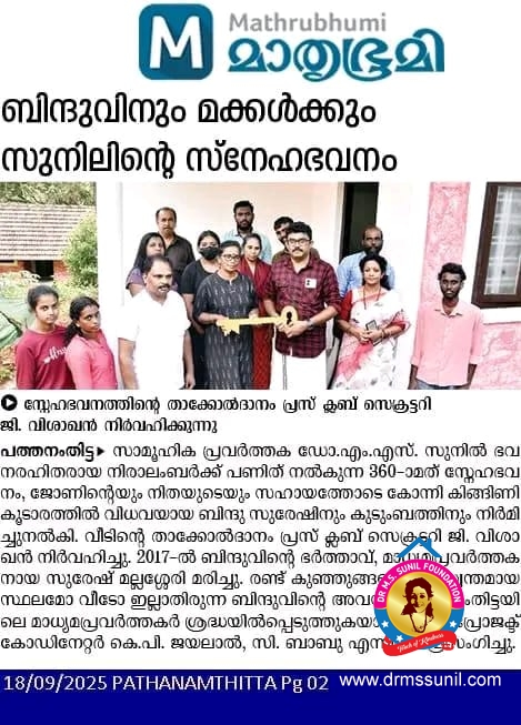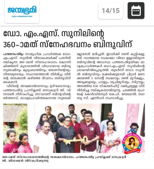 330- മത് സ്നേഹഭവനം സൂര്യയ്ക്കും കുടുംബത്തിനും നൽകി.