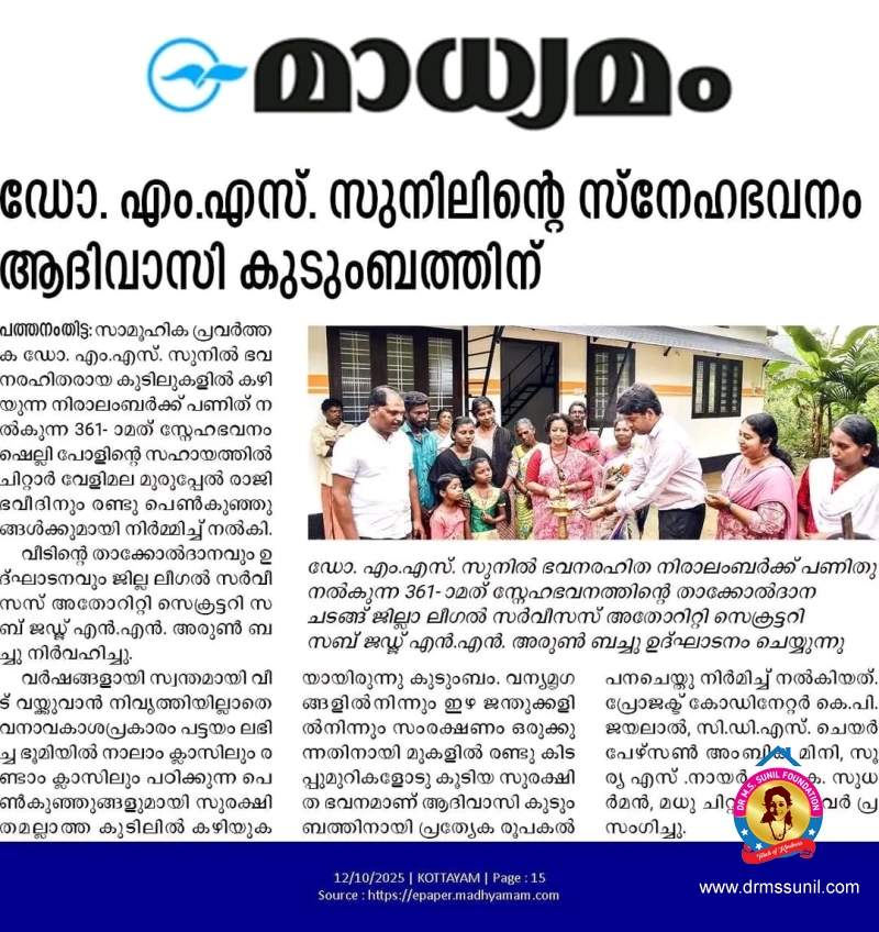 330- മത് സ്നേഹഭവനം സൂര്യയ്ക്കും കുടുംബത്തിനും നൽകി.