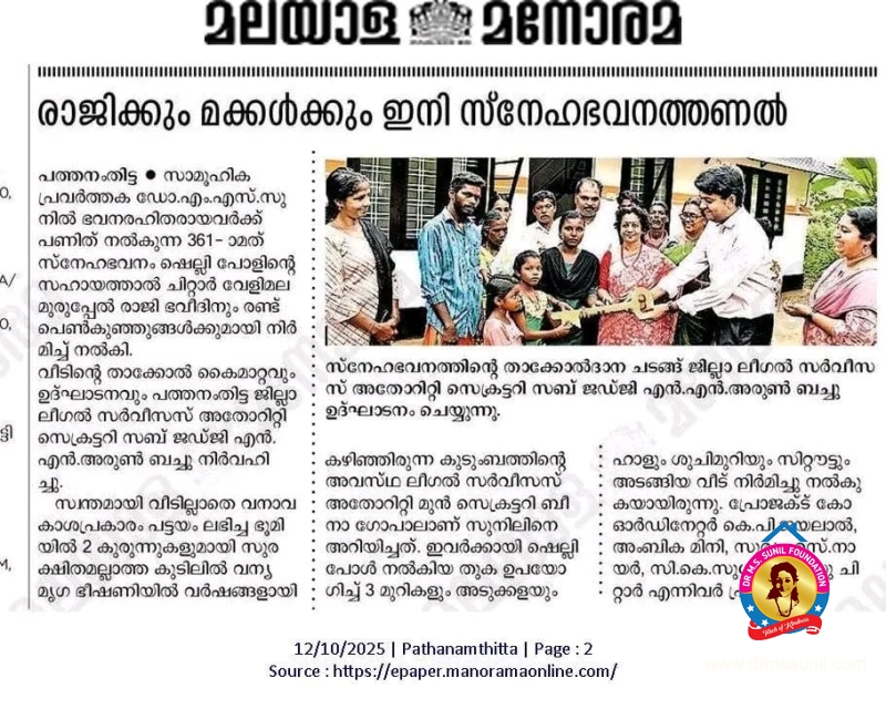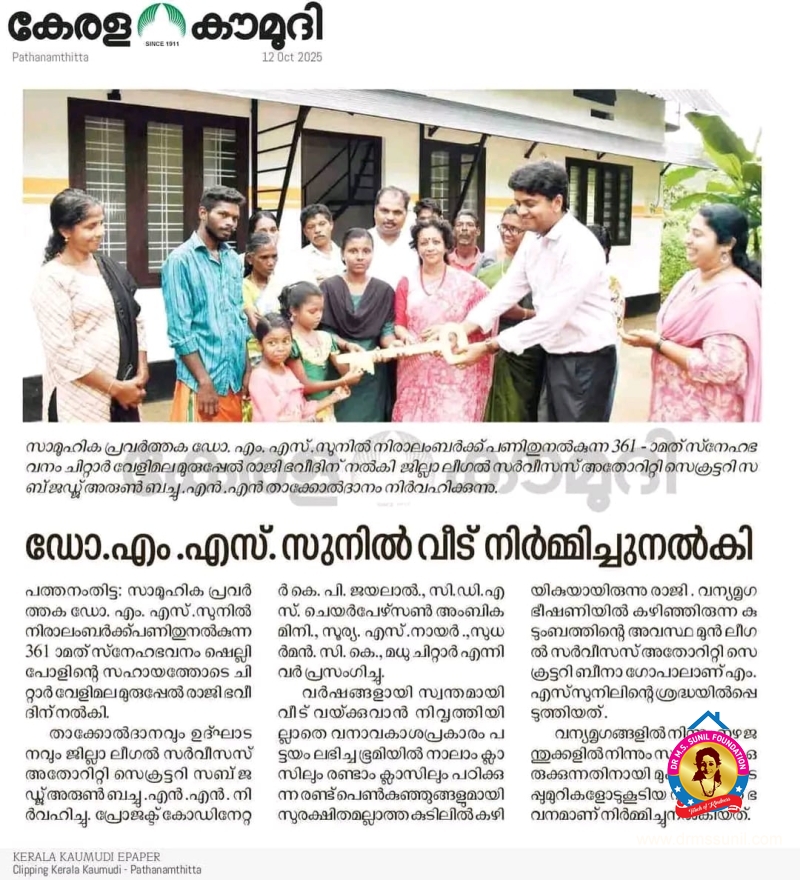 341st Snehabhavanam handed over to Kunjamma and grandchildren